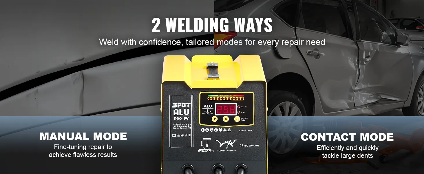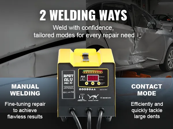 De handmatige modus geeft u controle over het nauwkeurig afstellen van reparaties, zodat u vlekkeloze resultaten behaalt bij complexe klussen. Schakel over naar de automatische contactmodus om grotere deuken snel en efficiënt aan te pakken.
