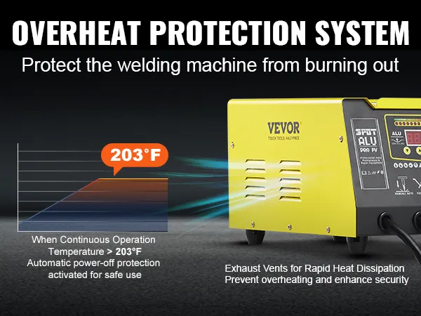 Onze puntlasmachine is uitgerust met een intelligent oververhittingsbeveiligingssysteem dat wordt geactiveerd wanneer de temperatuur hoger is dan 99°C. Dit voorkomt kortsluiting en schade aan de machine.