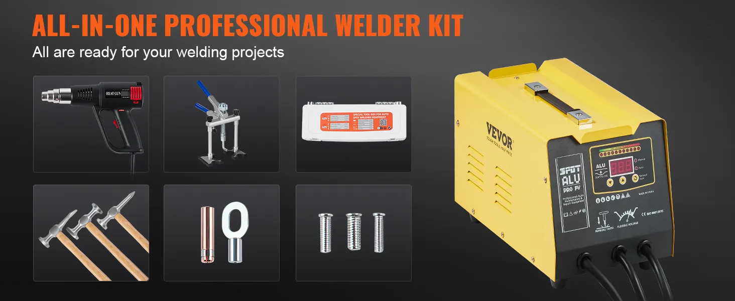 Professioneel deuken verwijderen: de VEVOR Stud Welder Dent Puller biedt een snelle en efficiënte oplossing voor het verwijderen van deuken uit aluminium carrosseriepanelen. De deuken worden nauwkeurig verwijderd en de kracht wordt gecontroleerd, zodat u telkens weer op professioneel niveau deuken kunt repareren.