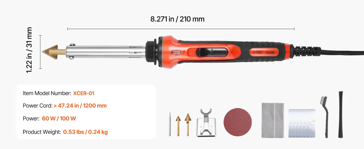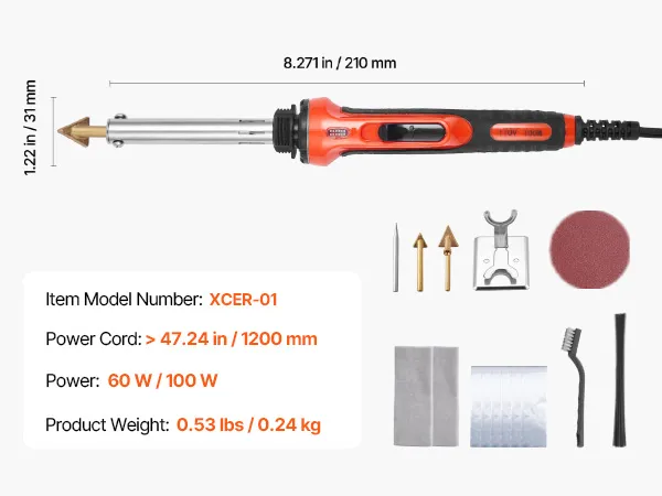 Veiligheidsinstructies voor gebruik: Controleer voor gebruik of de laspunt goed vastzit. Raak de metalen onderdelen niet aan tijdens gebruik, omdat deze heet worden. Wanneer u de laspen niet gebruikt, plaatst u deze op een metalen standaard en verwijdert u na gebruik eventuele geoxideerde resten van de punt.