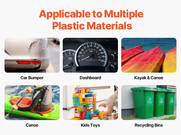 Of het nu gaat om autobumpers, dashboards, kajaks, elektronische behuizingen, kinderspeelgoed of afvalbakken voor recycling: deze soldeerbout voor kunststof kan alles met gemak aan en is daarom uw veelzijdige reparatiehulp.