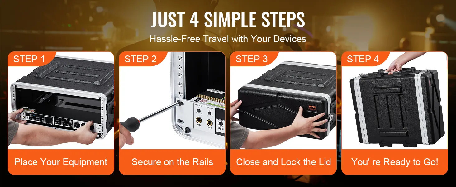 Outdoor Ready Design: De rackbehuizing is voorzien van afdichtingsstrips die een hoge bescherming bieden tegen stof en water, waardoor deze geschikt is voor verschillende omgevingen. Met deze functie kunt u uw apparatuur met een gerust hart in goede staat houden, of het nu in de studio, tijdens live-evenementen of onderweg is.