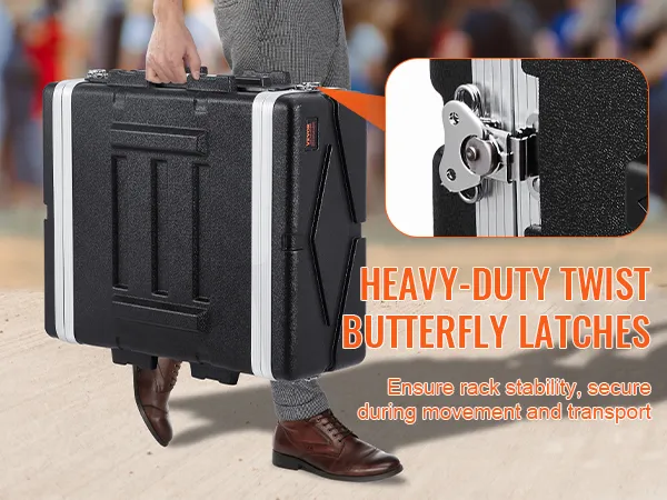 Deze rackbehuizing is voorzien van een robuust vlinderslot en biedt betrouwbare beveiliging. Het robuuste slot houdt de koffer veilig gesloten en voorkomt onbedoeld openen.