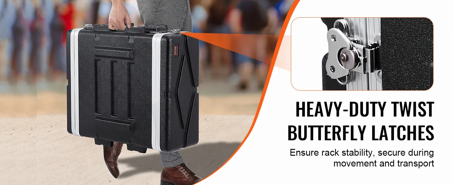 Met gemakkelijk toegankelijke verwijderbare panelen, veilige vlindersluitingen en stapelbare groeven en verkrijgbaar in meerdere maten (2U, 4U, 6U, 8U), is onze rackbehuizing ideaal voor het opslaan en transporteren van apparatuur.