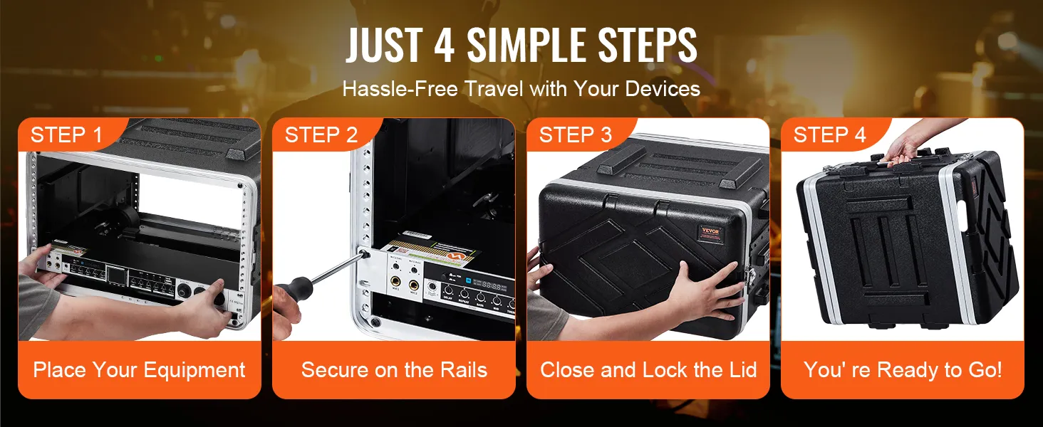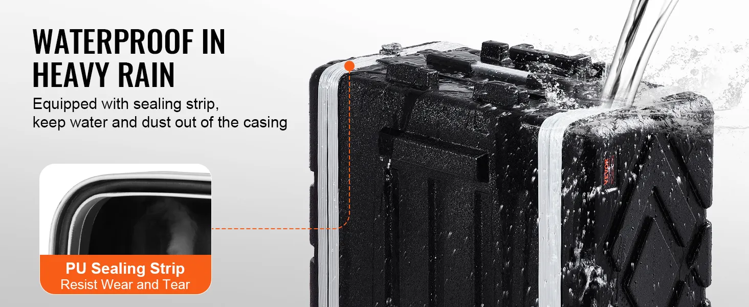 Outdoor Ready Design: De rackbehuizing is voorzien van afdichtingsstrips die een hoge bescherming bieden tegen stof en water, waardoor deze geschikt is voor verschillende omgevingen. Met deze functie kunt u uw apparatuur met een gerust hart in goede staat houden, of het nu in de studio, tijdens live-evenementen of onderweg is.