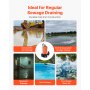 Snelle en efficiënte afvoer: Uitgerust met een robuuste 1500W (2 pk) motor, levert deze dompelpomp tot 21.000 l/u (5548 GPH) en bereikt een maximale opvoerhoogte van 18 m (59 ft), wat zorgt voor een snelle en efficiënte afvoer van afvalwater.
