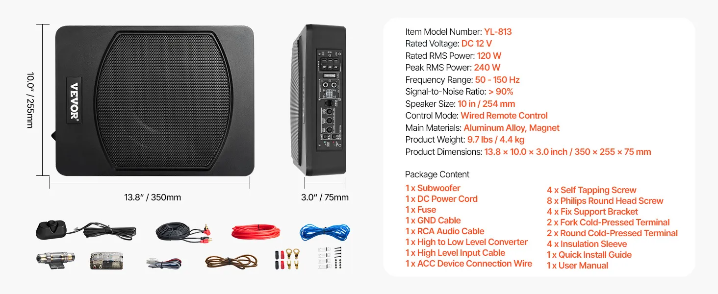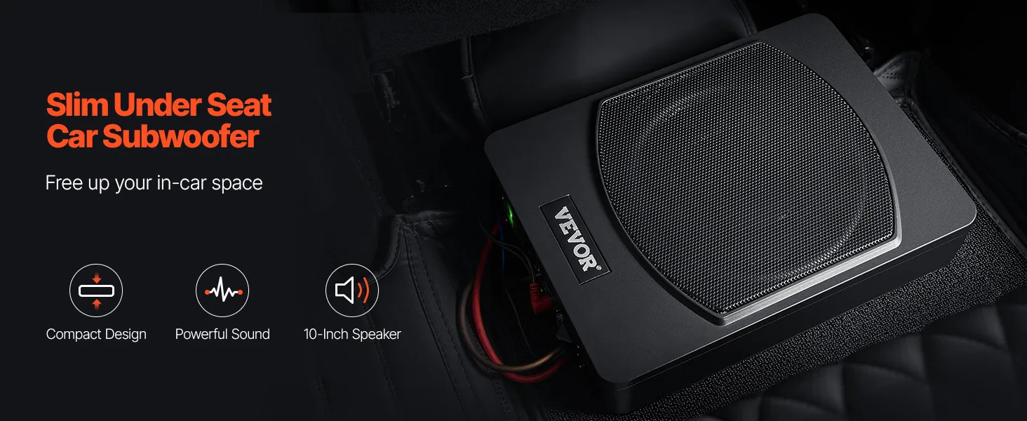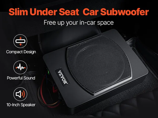 VEVOR Onderstoel Auto Subwoofer 240W 254mm Slanke Auto Subwoofer Onderstoel Subsysteem met Ingebouwde Versterker, Hoge/Lage Niveau Input en Volumeregeling voor SUV's en Trucks