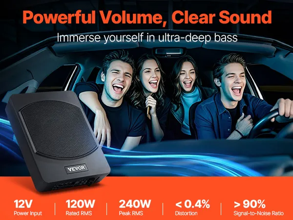 Zelfs bij hoge volumes blijft het geluid helder en puur. Deze subwoofer voor auto's en vrachtwagens minimaliseert achtergrondgeluiden, zodat u tijdens elke roadtrip kunt genieten van hifi-surroundgeluid.