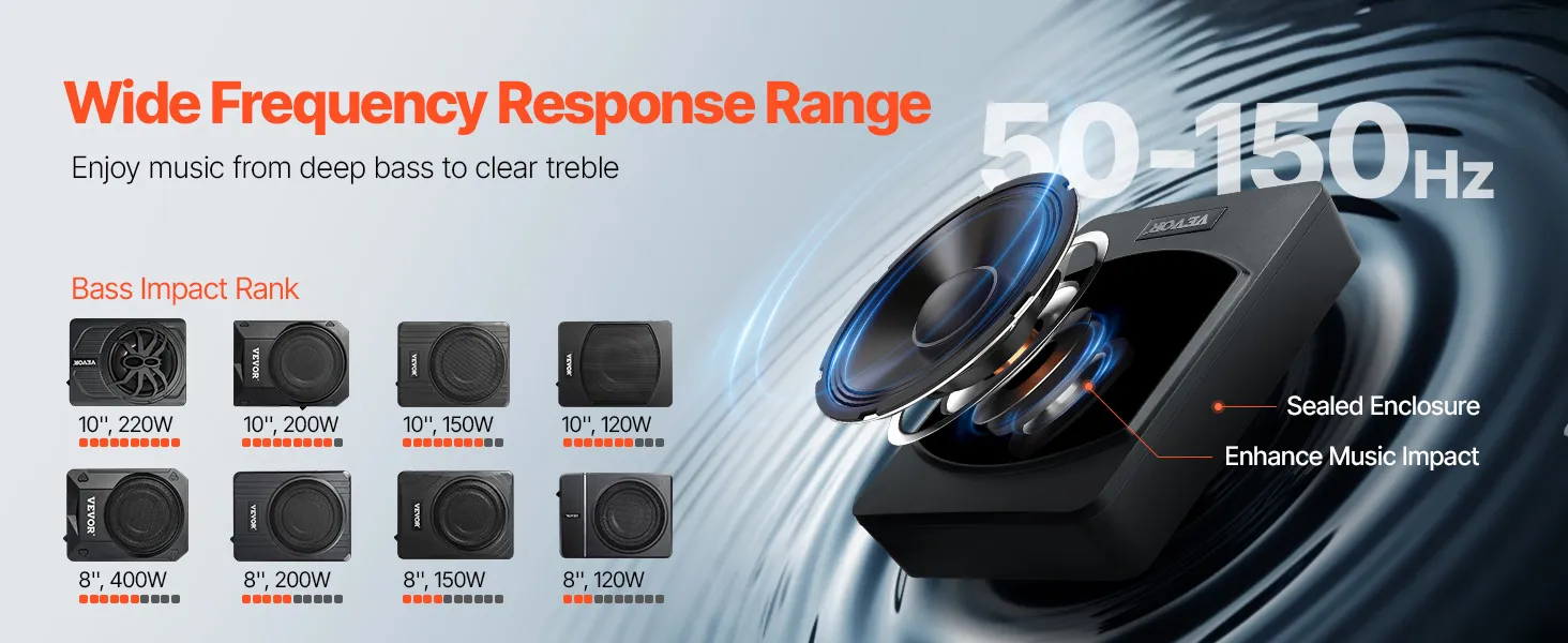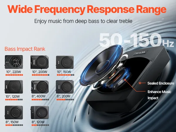 Onze autosubwoofer is ontworpen voor basliefhebbers en biedt een audio-ervaring met een volledig bereik met een frequentierespons van 50 tot 150 Hz. Of u nu R&B, hiphop, EDM of rock speelt, de subwoofer levert elke keer weer een intens ritme en een onovertroffen bas.