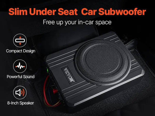Slim and Compact: Our ultra-slim 3.1-inch under seat car subwoofer, with a built-in amplifier, fits seamlessly under your car seat, maximizing space while enhancing your car audio system. Enjoy deep, powerful bass and immersive sound quality, making every drive more enjoyable.