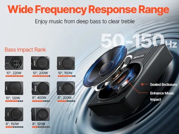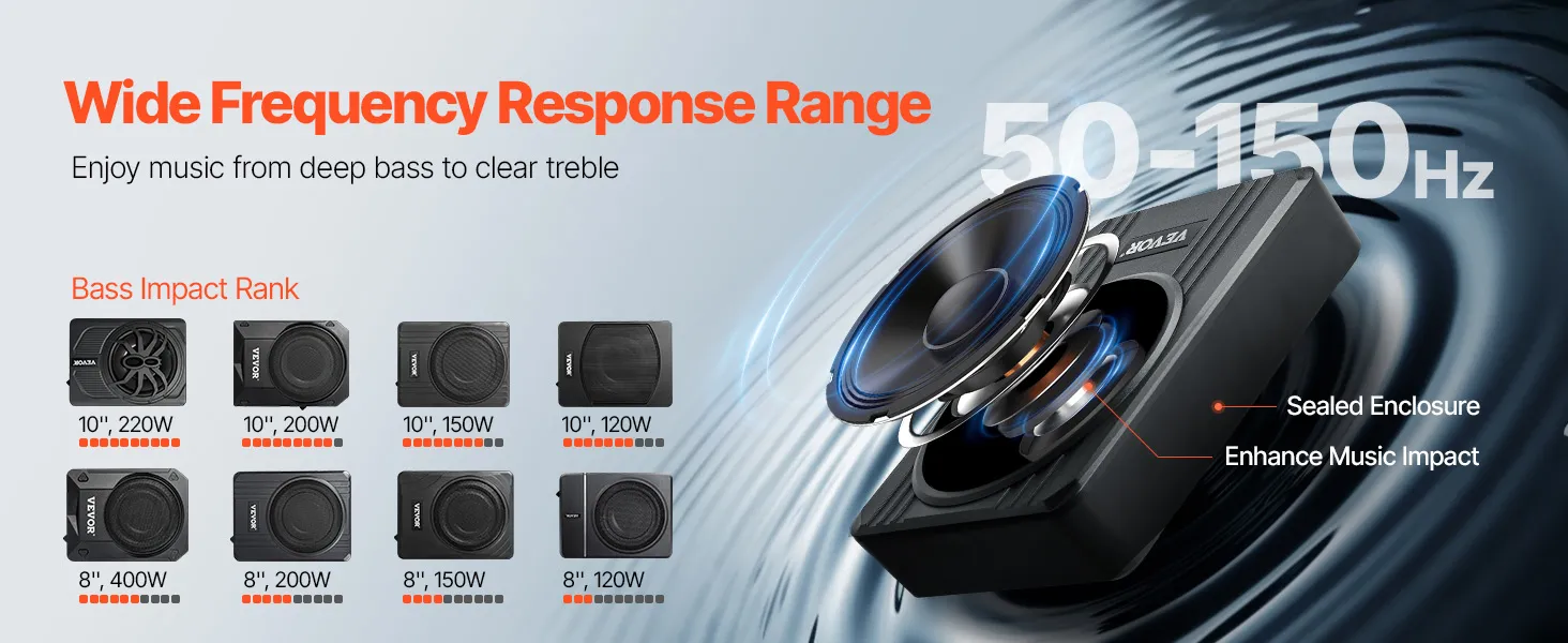 Powerful Bass Experience: 50-150 Hz wide frequency response range covers the essential low-frequency spectrum, delivering a more balanced and complete auditory experience from bass to treble. The sealed enclosure enhances music depth and impact, ideal for genres that require strong rhythms and bass support, such as R&B, hip-hop, electronic dance music, and rock.