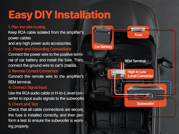 Highly Compatible: This under seat car truck subwoofer offers multiple signal input options, supporting both low-level RCA inputs and high-level inputs. It also includes a high-to-low level converter, ensuring compatibility with a wide range of car audio system, whether or not the main unit is equipped with RCA output.