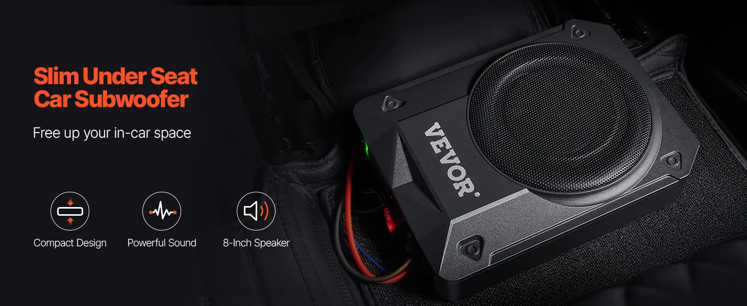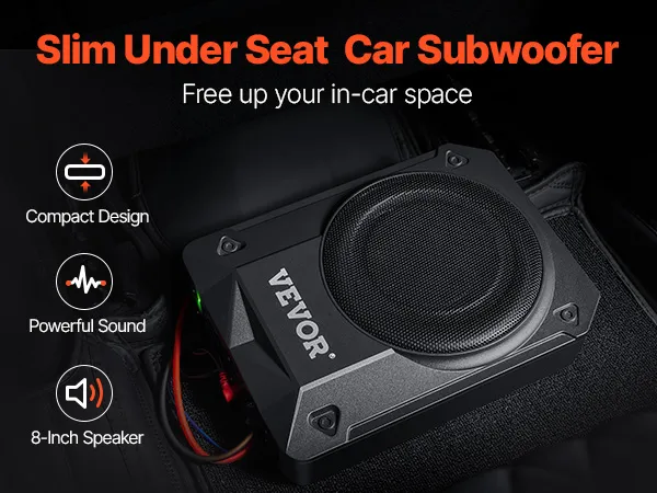 VEVOR 8" 800W Underseat Car Subwoofer, Slim Powered Car Subwoofers Under the Seat, Low Profile Audio Sub Built-in Amplifier, High/Low Level Input & Volume Controller for SUVs, Car, Truck, RV