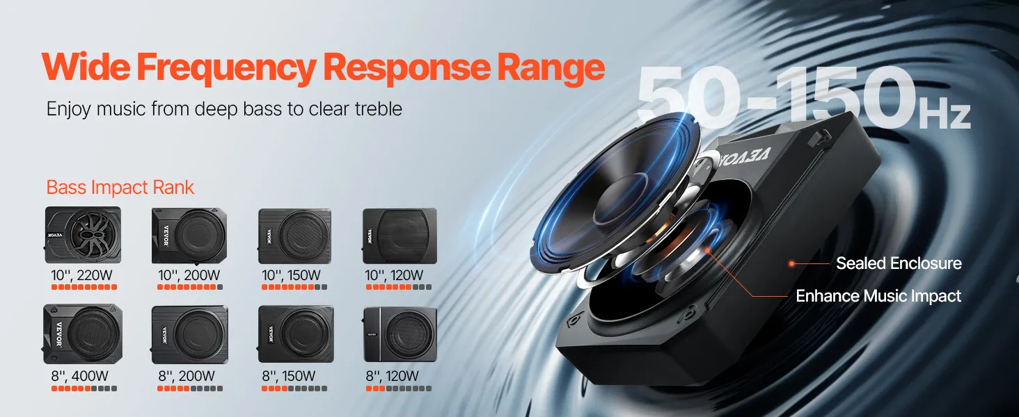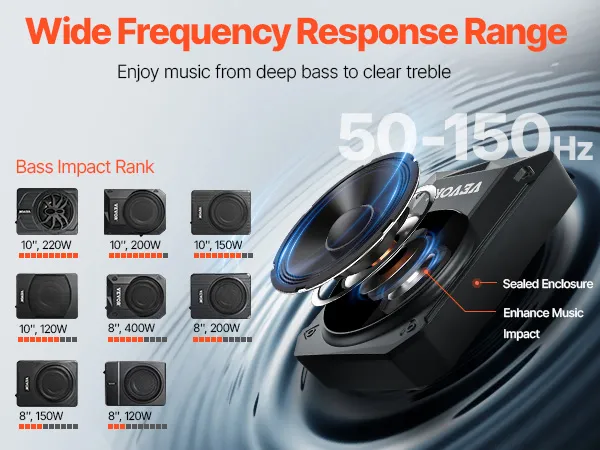 Powerful Bass Experience: 50-150 Hz wide frequency response range covers the essential low-frequency spectrum, delivering a more balanced and complete auditory experience from bass to treble. The sealed enclosure enhances music depth and impact, ideal for genres that require strong rhythms and bass support, such as R&B, hip-hop, electronic dance music, and rock.