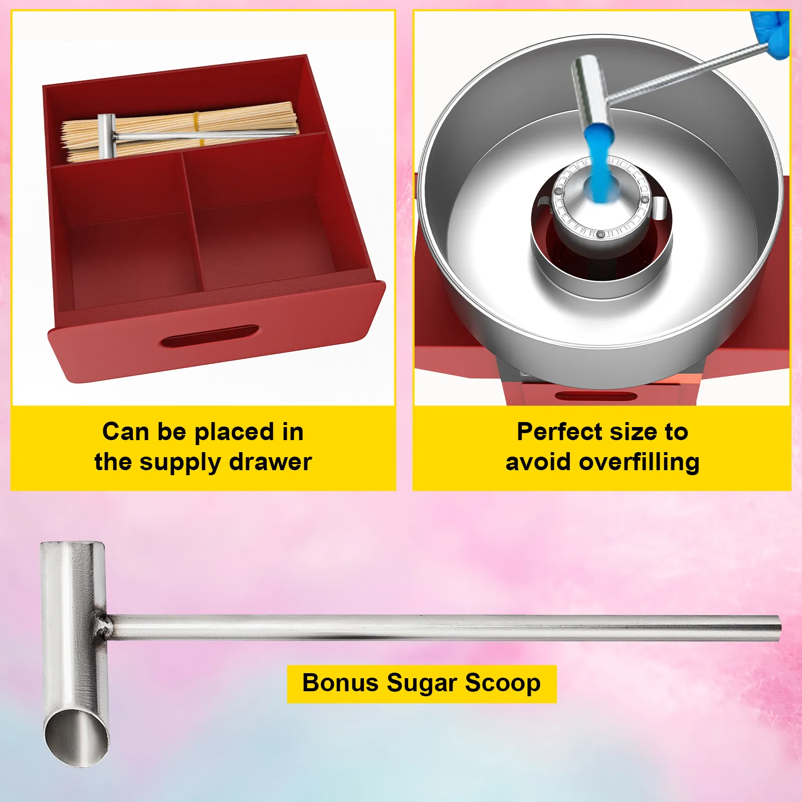 Het duurt slechts een paar minuten om de suikersnoepjes te maken. Met deze machine kunt u snel genieten van suikerspinnen, harde snoepjes en suikerspinnen, geschikt voor feesten, normale familiefeesten en commerciële doeleinden.
