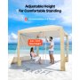 In hoogte verstelbaar: De grote strandcabine is voorzien van een verbeterde, verstelbare verbindingspaal waarmee de hoogte kan worden aangepast van 2,1 tot 2,4 meter. Dit zorgt voor meer hoofdruimte, zodat u comfortabel kunt staan zonder te hoeven bukken en kunt genieten van een breder uitzicht.