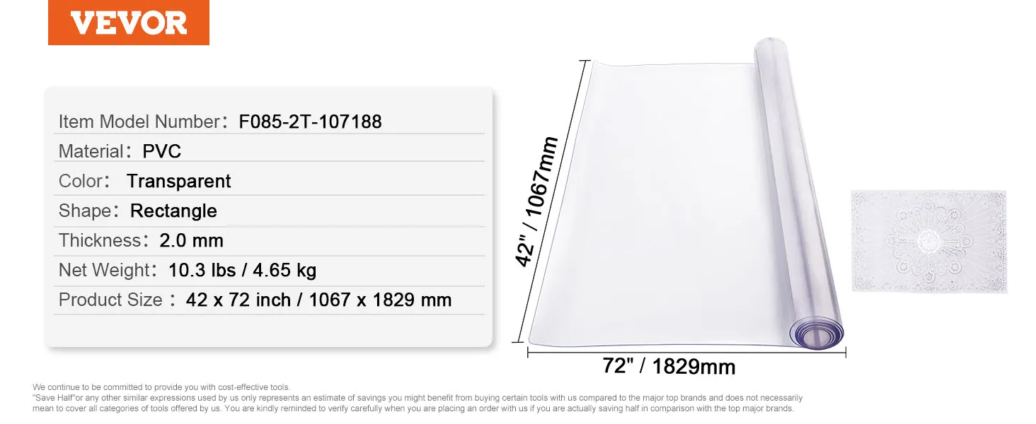 Discover our wide range of clear table cover protector, available in various sizes and shapes to suit your needs. And if you require a custom fit, easily trim the cover with scissors. Plus, our covers are intentionally cut slightly larger than the actual size to prevent physical shrinkage.