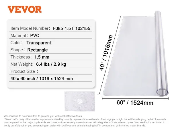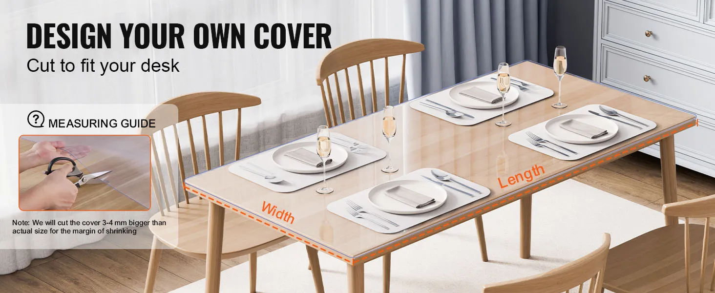 Discover our wide range of clear table cover protector, available in various sizes and shapes to suit your needs. And if you require a custom fit, easily trim the cover with scissors. Plus, our covers are intentionally cut slightly larger than the actual size to prevent physical shrinkage.