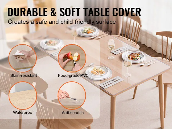 Protect Your Table: Our 40x60 inch/ 1016x1524 mm table cover protector provides all-around protection for your desktop, safeguarding your desktop from scratches, stains, watermarks, and burns. Say goodbye to worries about damage caused by hot cups, cutlery, or spills. With the clear color, our table cover brings life back to your desktop.