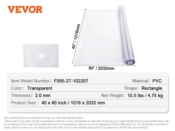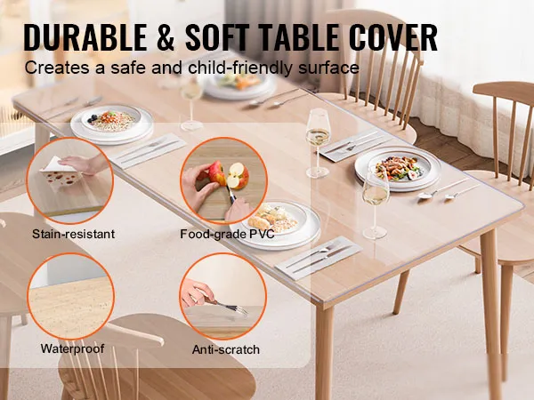 Veiligheid en betrouwbaarheid: onze transparante tafelbeschermer is gemaakt van hoogwaardig PVC-materiaal, 2,0 mm dik en ontworpen voor dagelijks gebruik. Het is duurzaam, antislip en temperatuurbestendig. Je kunt ze zonder aarzeling direct bij het eten gebruiken. Langdurige bescherming voor uw bureau, zelfs bij veelvuldig gebruik.