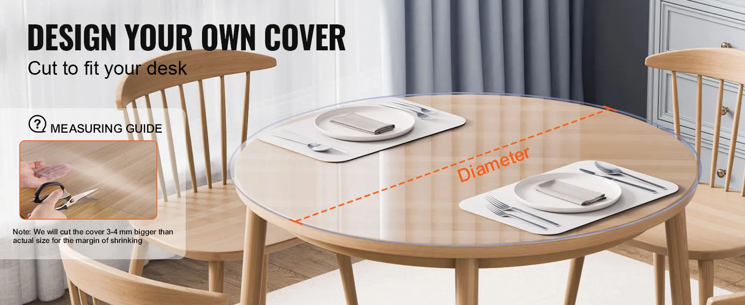 Ontdek ons ruime assortiment transparante tafelkleden, verkrijgbaar in verschillende maten en vormen, afhankelijk van uw behoeften. En als je een pasvorm op maat nodig hebt, kun je de deken eenvoudig met een schaar op maat knippen.