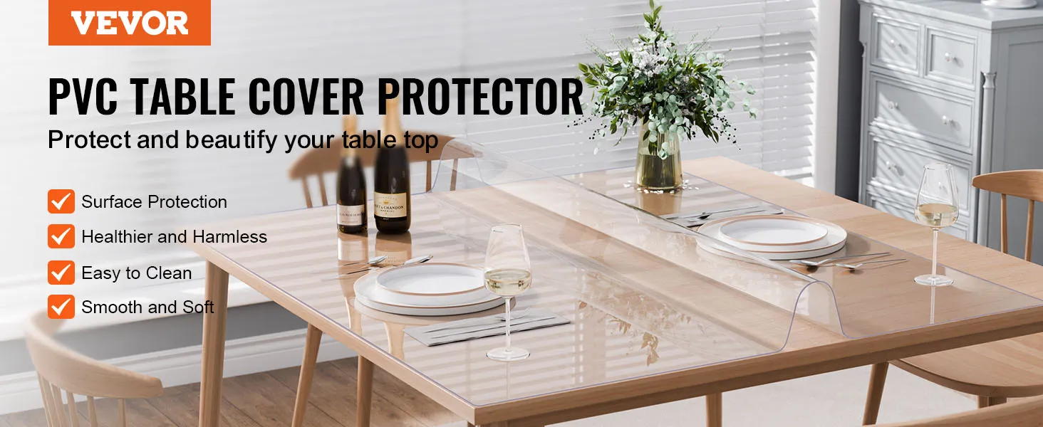 Our clear table protector provide top-notch protection and elevate your desktop's aesthetics. Experience the excellence of high-quality, soft, and smooth materials that are built to last and easy to clean. Whether it's for your dining table, kitchen counter, desk, or as a floor or appliance mat.