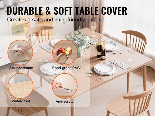 Made of high-quality PVC material, the clear table protector is resistant to wear and tear, provides superior slip resistance, and can withstand high temperatures. You can use them directly with food without any concerns. Enjoy a hassle-free, clean desktop!