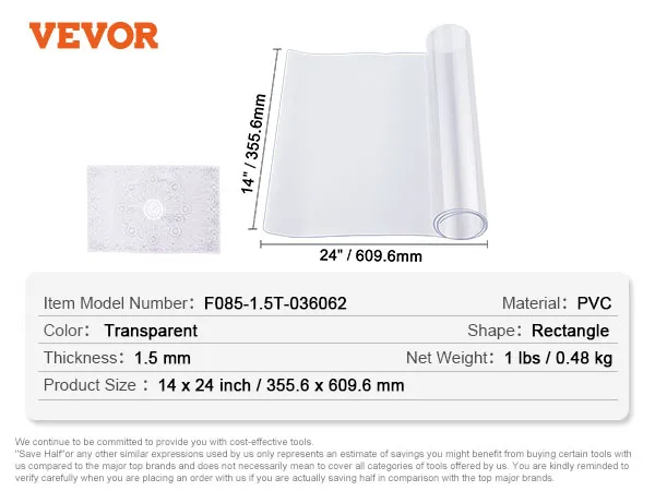 Veiligheid en betrouwbaarheid: onze transparante tafelbeschermer is gemaakt van hoogwaardig PVC-materiaal, 1,5 mm dik en ontworpen voor dagelijks gebruik. Het is duurzaam, antislip en temperatuurbestendig. Je kunt ze zonder aarzeling direct bij het eten gebruiken. Langdurige bescherming voor uw bureau, zelfs bij veelvuldig gebruik.