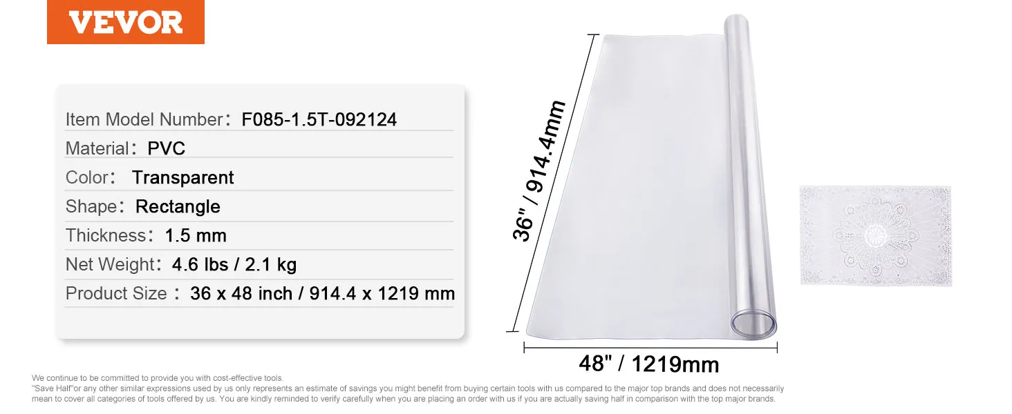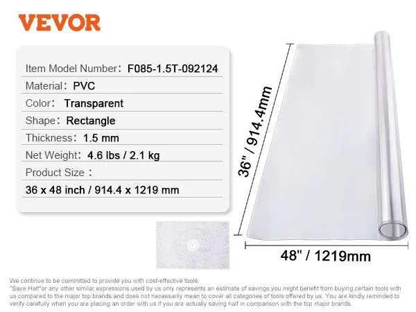 Veiligheid en betrouwbaarheid: onze transparante tafelbeschermer is gemaakt van hoogwaardig PVC-materiaal, 1,5 mm dik en ontworpen voor dagelijks gebruik. Het is duurzaam, antislip en temperatuurbestendig. Je kunt ze zonder aarzeling direct bij het eten gebruiken. Langdurige bescherming voor uw bureau, zelfs bij veelvuldig gebruik.