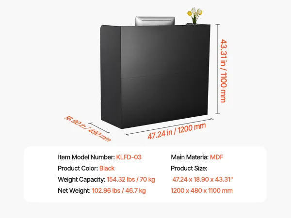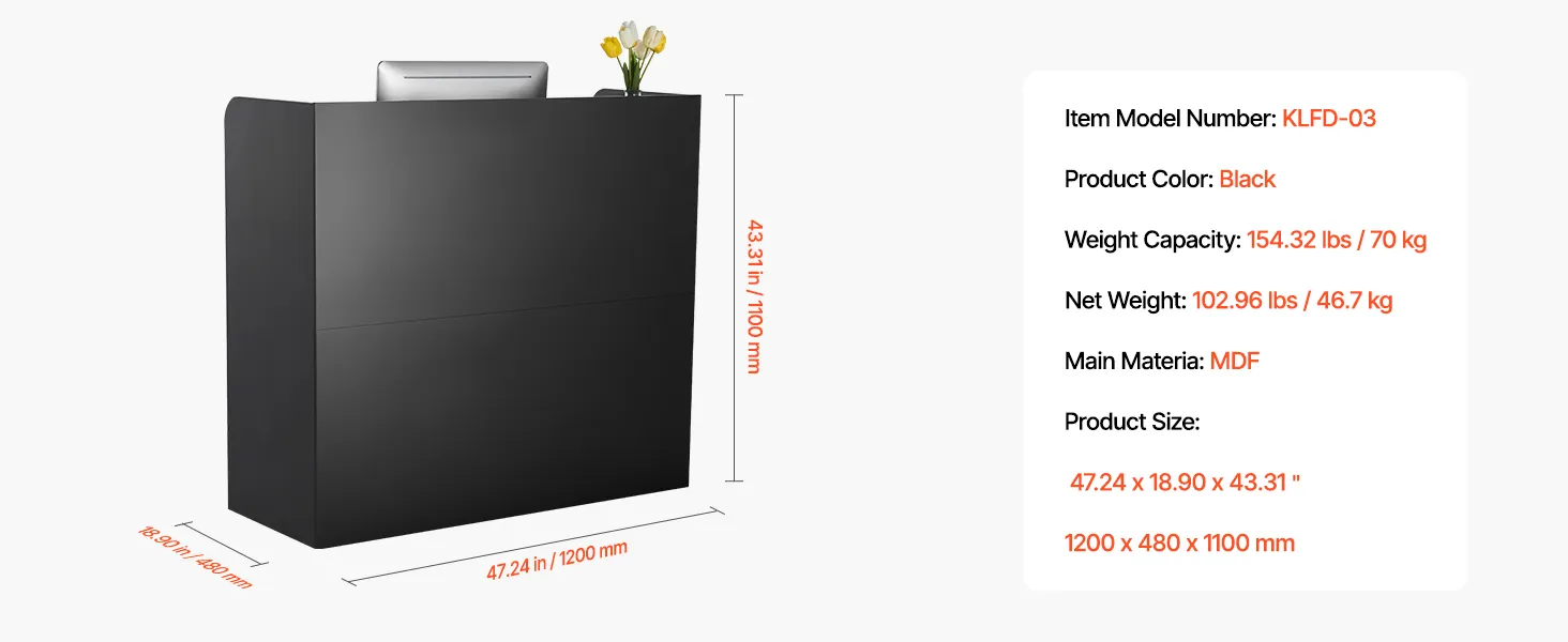 Sturdy & Reliable Construction: This reception desk is made from high-density fiberboard (MDF) with a smooth, wear-resistant, and waterproof surface, making it ideal for long-term use and easy maintenance. The desktop and frame are structurally stable with a strong weight-bearing capacity, ensuring durability and longevity.
