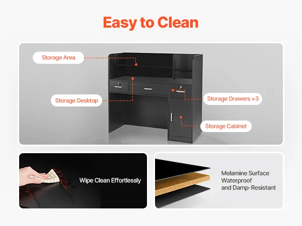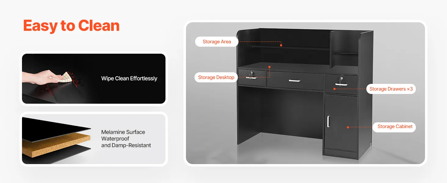 This retail desk is crafted from wear-resistant and waterproof materials, making it incredibly easy to wipe down and maintain. Less cleaning means more time for what matters!