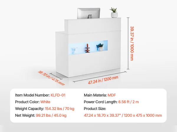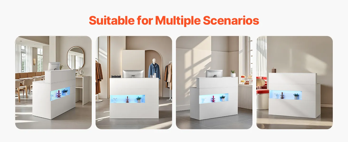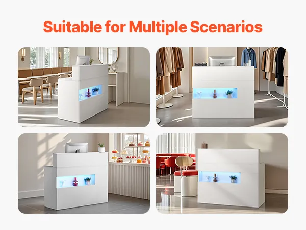 Practical & Stylish Design: Our receptionist desk is ideal for use in cashier counters, or retail environments. It blends seamlessly with various décor styles, while the built-in LED light strip adds a unique visual effect, giving your lobby or reception area a modern and inviting touch.