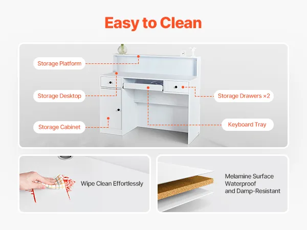 This retail desk is crafted from wear-resistant and waterproof materials, making it incredibly easy to wipe down and maintain. Less cleaning means more time for what matters!