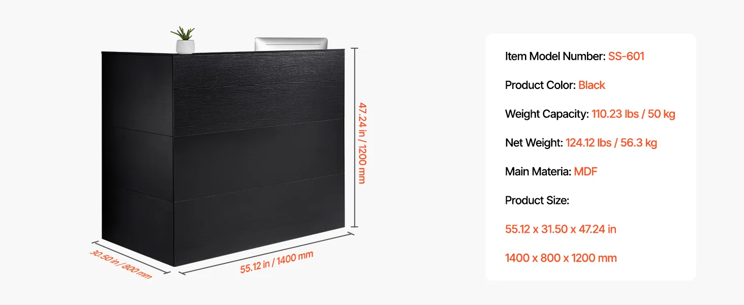 Sturdy & Reliable Construction: This reception desk is made from high-density fiberboard (MDF) with a smooth, wear-resistant, and waterproof surface, making it ideal for long-term use and easy maintenance. The desktop and frame are structurally stable with a strong weight-bearing capacity, ensuring durability and longevity.