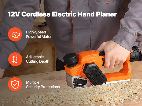 Efficiënt en nauwkeurig zagen: de accu-schaafmachine beschikt over een ingebouwde 12V borstelloze motor met een maximale schaafbreedte van 56 mm en een schaafdiepte van 1 mm. Dit maakt moeiteloos, efficiënt en nauwkeurig zagen mogelijk, wat tijd en moeite bespaart.