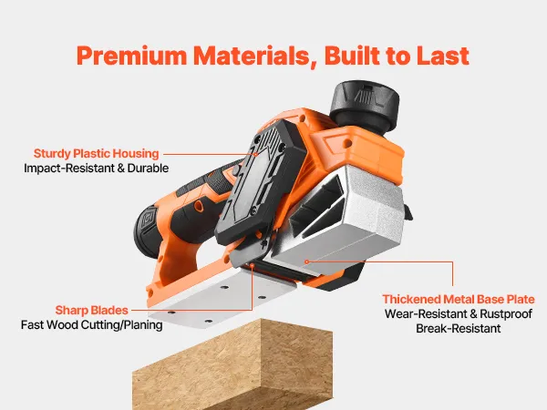 Dankzij de krachtige motor levert onze elektrische handschaaf sterke prestaties. De robuuste kunststof behuizing is slagvast, terwijl de versterkte metalen voetplaat bestand is tegen slijtage en roest. Scherpe messen zorgen voor snel zagen en soepel schaven, waardoor de levensduur van het gereedschap wordt verlengd.