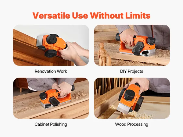 Accu met hoge capaciteit: Onze handschaafmachine voor houtbewerking is voorzien van een accu met hoge capaciteit, waardoor u kunt genieten van draadloos gemak en altijd en overal efficiënt kunt werken. Pak veeleisende taken in complexe omgevingen aan zonder de beperkingen van een stroomkabel.