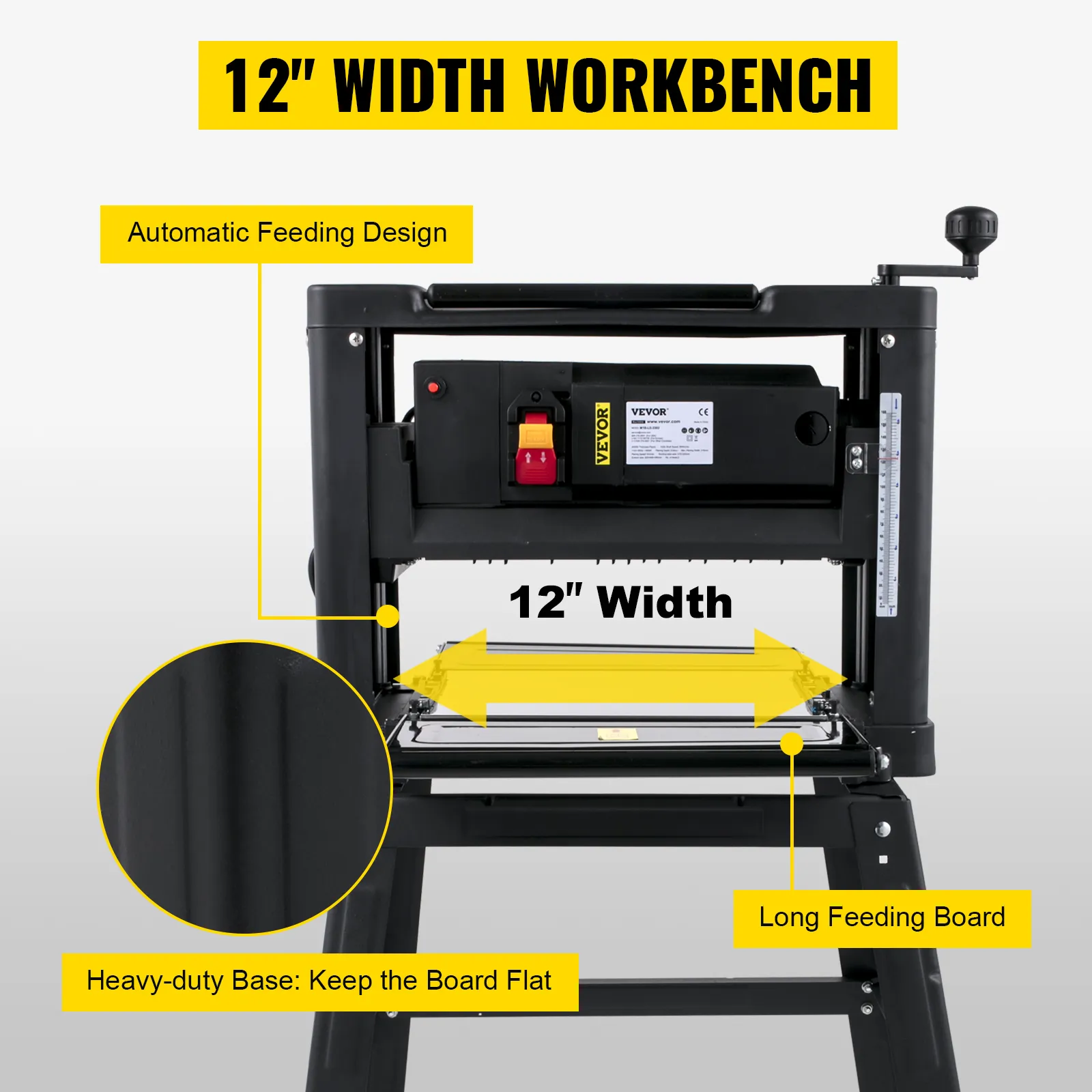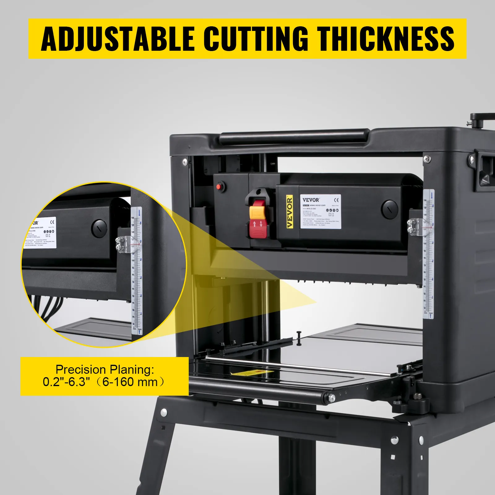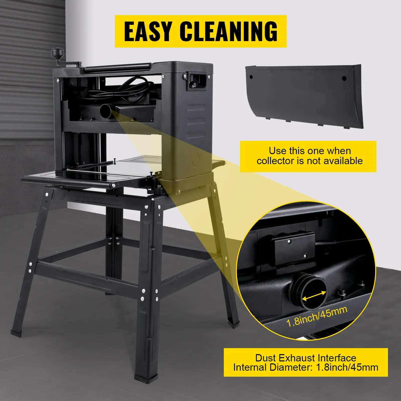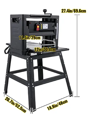 Voor uw gemak bieden wij u een afneembare heavy-duty ijzeren standaard voor duurzaamheid en een lange levensduur. U kunt het gereedschap dus zonder werktafel gebruiken. Bovendien zorgen vier rubberen voetjes ervoor dat de schaafmachine niet wiebelt tijdens het gebruik.