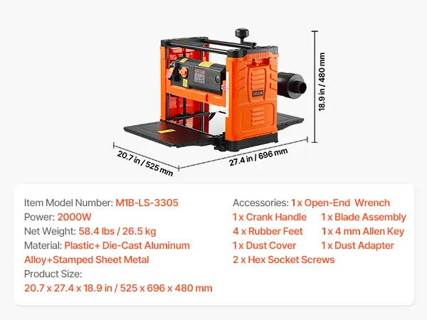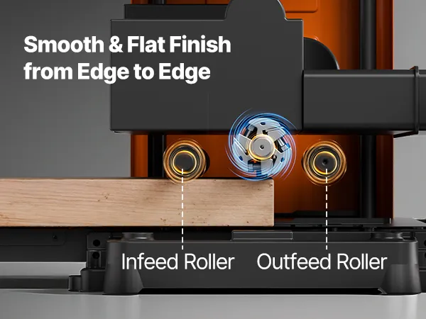 Deze schaafmachine is ontworpen voor doe-het-zelvers en kleine werkplaatsen en beschikt over een invoersysteem met twee rollen, twee invoersnelheden, een krachtige motor, nauwkeurige diepteregeling tot 1/8 inch en een nauwkeurigheid tot op de millimeter, waardoor dik hardhout gemakkelijk te bewerken is. Geïntegreerde stofafzuiging zorgt voor een schone werkplek.