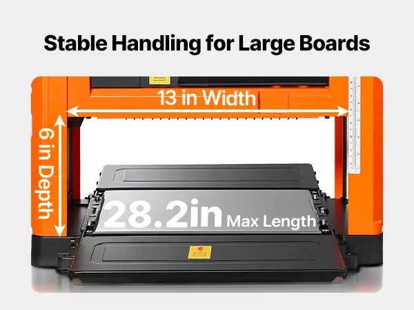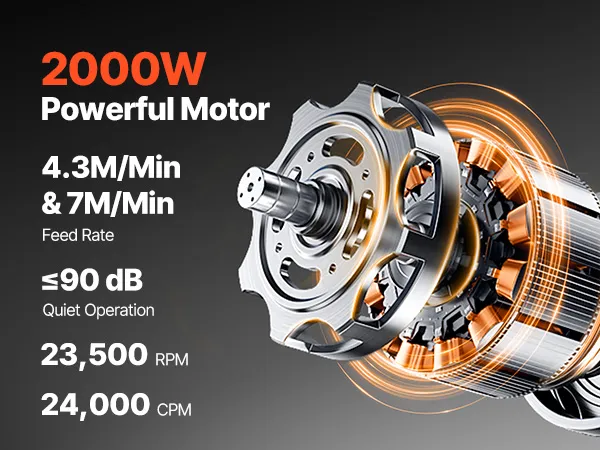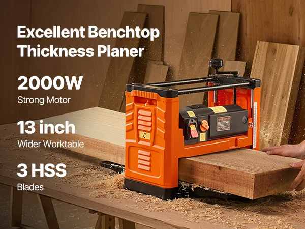 Krachtige motor voor het schaven van hardhout: Aangedreven door een robuuste 2000 watt motor met tot wel 24.000 omwentelingen per minuut, bewerkt deze vandiktebank moeiteloos eiken, esdoorn en andere hardhoutsoorten. Geniet van soepele, probleemloze prestaties, zelfs onder zware belasting.