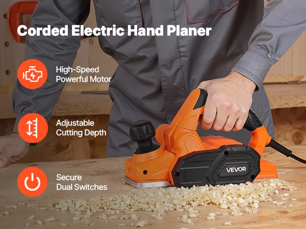Powered by a high-speed motor with built-in protection, this electric hand planer handles various wood processing tasks with ease, saving both time and effort.