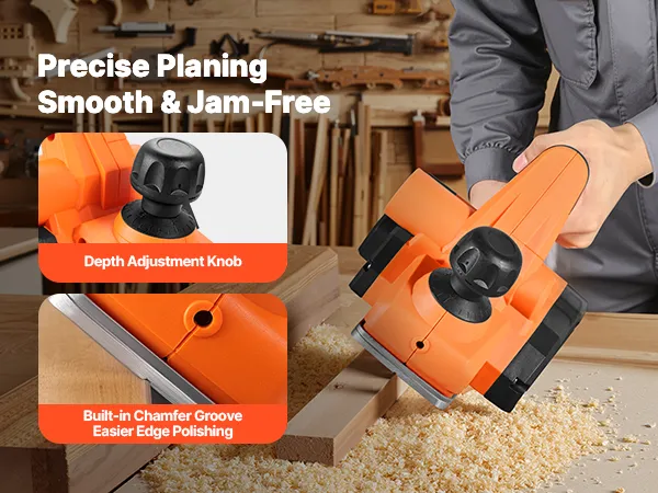 Adjustable Cutting Depth: Featuring a knob adjustment, this power handheld planer allows you to fine-tune cutting depth for different woodworking tasks. Whether for thin or deep cutting, it handles them easily while ensuring precise results every time