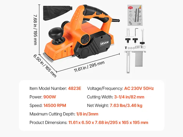 Efficiënt en nauwkeurig zagen: Aangedreven door een krachtige motor biedt deze elektrische schaafmachine een maximale snijbreedte van 82 mm en een snijdiepte van 3 mm. Hiermee kunt u snel en nauwkeurig door hout zagen, wat u tijd en moeite bespaart.