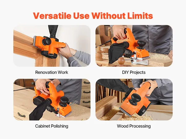 Nauwkeurig afschuinen: Dankzij de geïntegreerde afschuingroeven kan de elektrische handschaafmachine met snoer gemakkelijk plankranden schaven en snel een glad, vlak afschuiningseffect bereiken. Zeg vaarwel tegen ruwe, ongelijke randen.