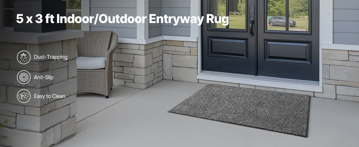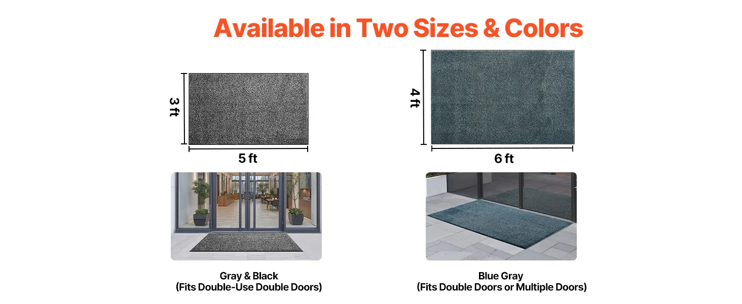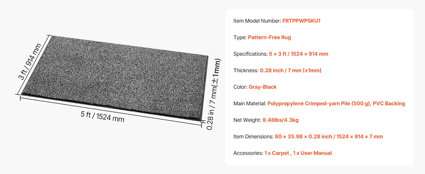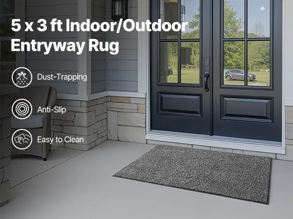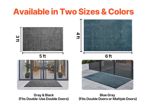 Productspecificaties: De deurmat is 1524 x 914 mm (5 x 3 voet) groot en 7 mm (0,28 inch) dik. Hij blijft niet in kieren van deuren hangen en bestrijkt een groter oppervlak, waardoor hij ideaal is voor zowel residentieel als commercieel gebruik.