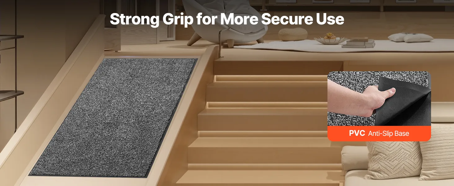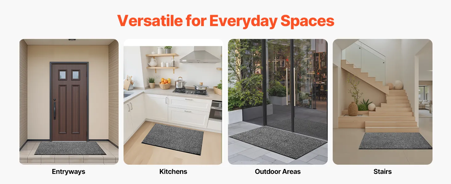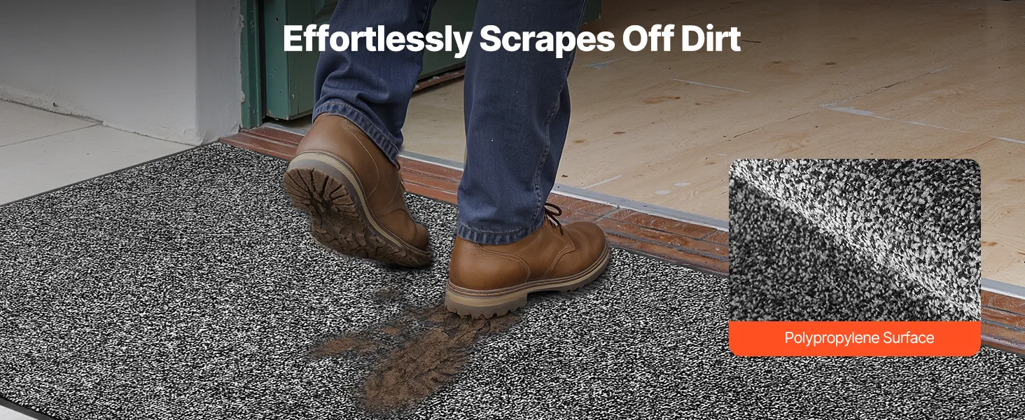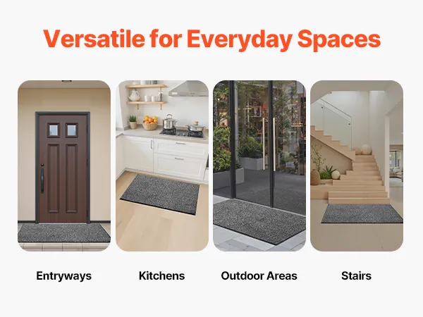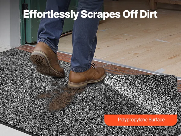 Absorberend en waterabsorberend: onze deurmat vangt effectief stof, water en gemorste vloeistoffen op. Of het nu regendruppels van paraplu's zijn of vuil dat door dagelijks voetverkeer wordt meegebracht, hij houdt vloeren moeiteloos schoon en droog.
