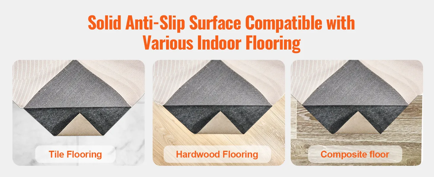 Geschikt voor verschillende vloertypes - tegels, hardhout of laminaat - het duurzame antislipontwerp zorgt ervoor dat uw tapijt stabiel blijft in elke binnenomgeving.
