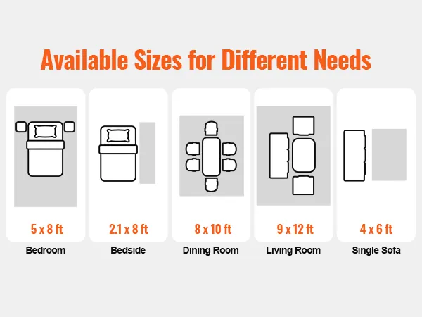 Dit vloerkleed is verkrijgbaar in verschillende maten en is geschikt voor slaapkamers, eetkamers, woonkamers en andere ruimtes. Ongeacht het type vloer, het zorgt voor een comfortabele en stabiele ervaring en voldoet gemakkelijk aan uw woonwensen.