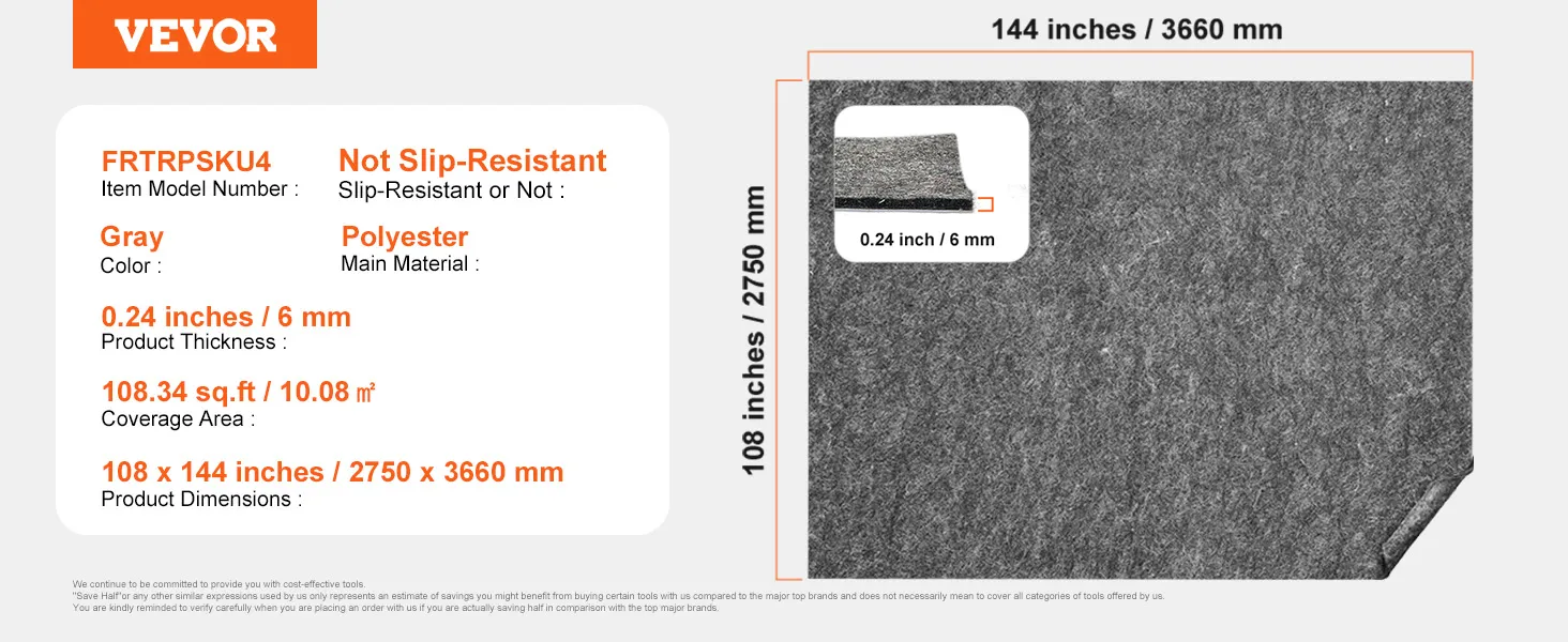Perfecte dekking: met een dekkingsoppervlak van 10,08 m² voldoet dit tapijtkussen gemakkelijk aan de tapijtbehoeften van uw kamer en verbetert het uw leefomgeving aanzienlijk. De grote oppervlaktebescherming verhoogt het comfort en zorgt voor een gezellige ervaring in ruime ruimtes.