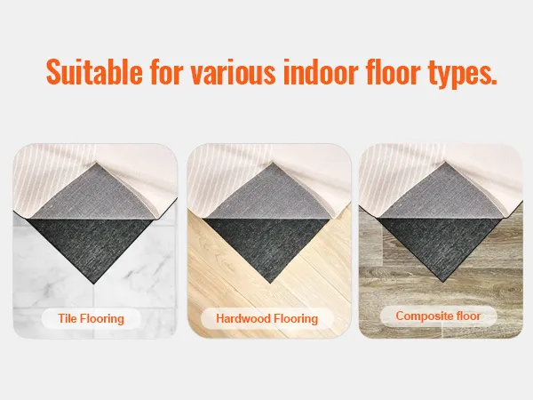 Geschikt voor verschillende vloertypes - tegels, hardhout of laminaat - het duurzame antislipontwerp zorgt ervoor dat uw tapijt stabiel blijft in elke binnenomgeving.